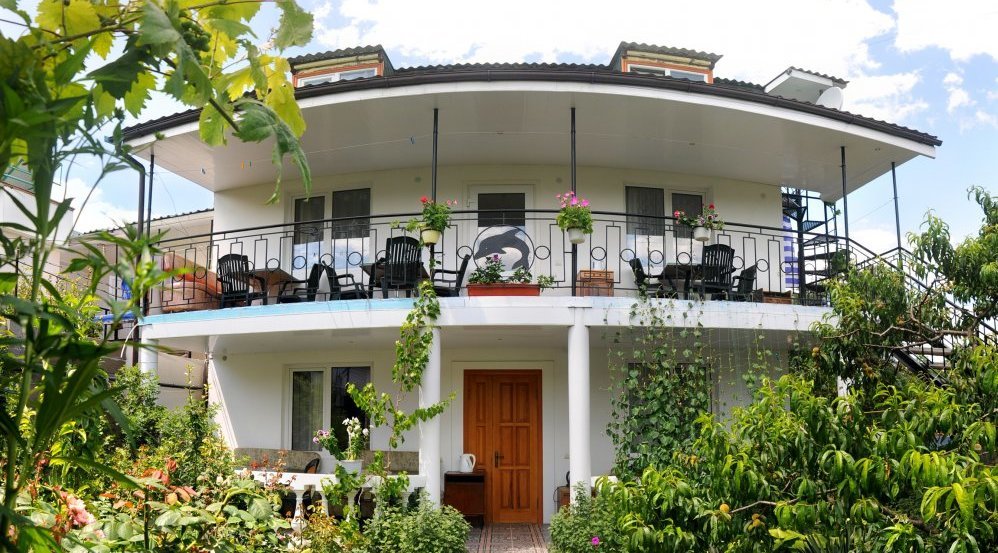 Небольшой уютный дворик, зоны отдыха на свежем воздухе, большая веранда с библиотекой, розарий создают атмосферу беззаботного летнего отдыха у моря. В большой оборудованной кухне, в отдельно стоящем доме, имеется все необходимое для приготовления пищи самостоятельно.